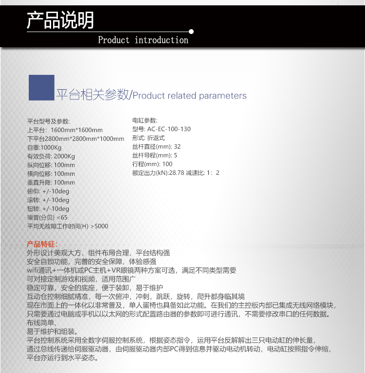 答: 我公司主要從事仿真平臺、六自由度平臺和運動平臺控制卡的研發、生產與銷售,同時承接大型4D/5D/7D影院等工程。專注技術領先,提升用戶體驗是我們的追求!
