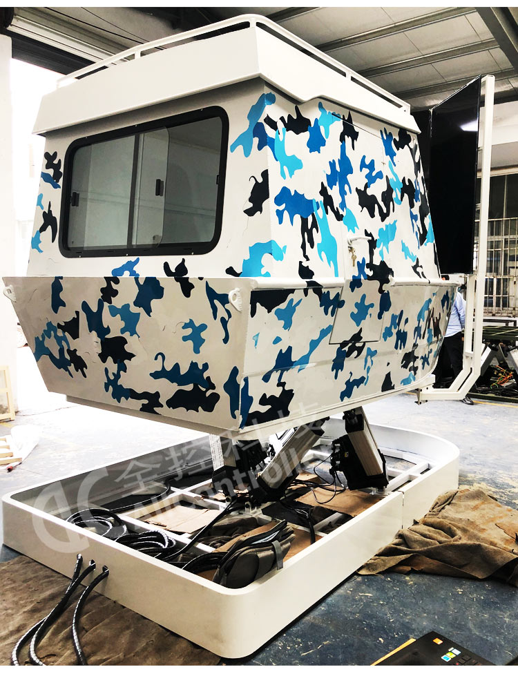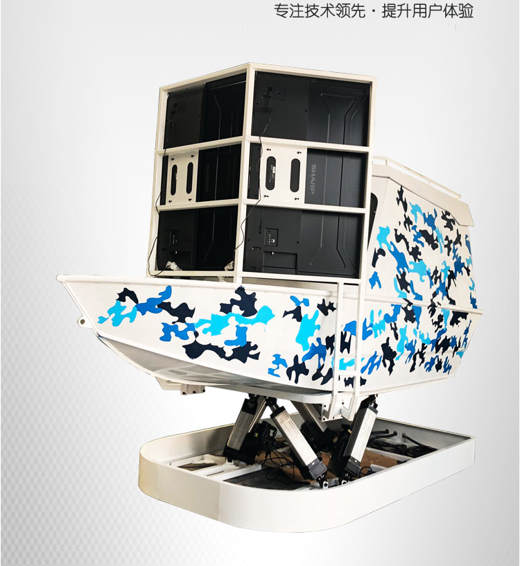 南京全控經過多年模擬器及六自由度平臺技術的基礎上進行改進,并取得重大突破,多項技術處于國際領先位置。設備采用最新的六自由度結構,無機械死角,俯仰角范圍,滾轉角范圍,通過專業計算機對飛行數據的快速處理和計算,運動座艙可以實時反映輪船的姿態變化。新升級六軸伺服控制系統,動作運行速度快而且柔和更加適合游藝產品應用、大大降低用戶維護和安裝成本,采用計算機自動控制為核心的控制系統,較以前的運動開關系統有了很大的改善,使整機功能更加完善,操作界面更加簡單明了;采用標準的接口和電纜,使現場安裝和調試更加簡單。