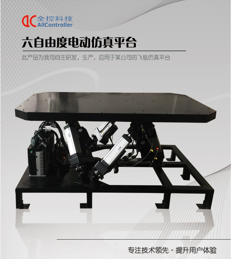 運動平臺系統(tǒng)采用全電動技術克服了傳動液壓設備安全性低、維護復雜的不足,讓運動模擬技術更便捷、更安全可靠。全電動六自由度運動平臺,可以模擬飛行器上下、左右、前后、俯仰、偏航、滾轉(zhuǎn)六個方向的位置、速度、加速度、角度、角速度、角加速度等位姿,精度高、響應快,動感效果好。 運動系統(tǒng)為使用者提供額外的真實的交互式運動感受。也可以作為動力學半物理仿真平臺,除了帶來刺激的娛樂駕駛體驗還能滿足試驗測試等科研需求。