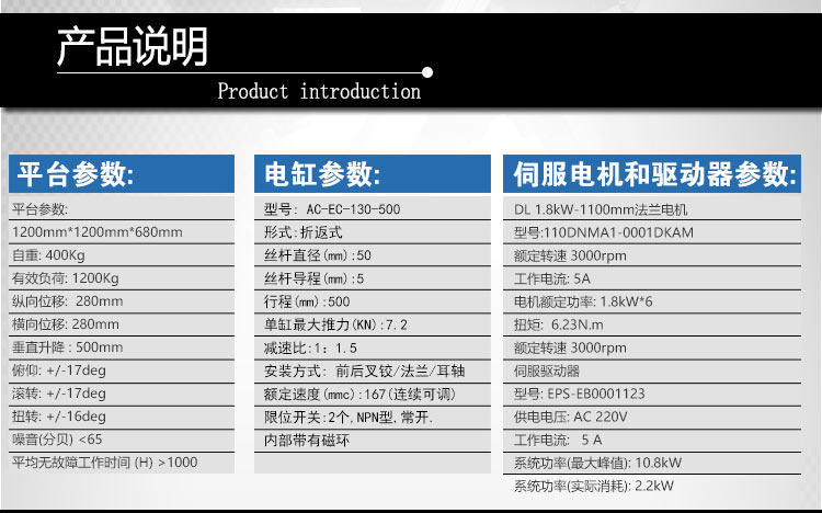 本公司的動感座椅平臺的有效載荷(載人數量)、升降行程、傾斜角度、方位角度、縱/橫向位移等關鍵參數可根據用戶的需求定制。