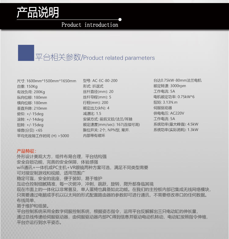 答: 我公司主要從事仿真平臺、六自由度平臺和運動平臺控制卡的研發、生產與銷售,同時承接大型4D/5D/7D影院等工程。專注技術領先,提升用戶體驗是我們的追求!