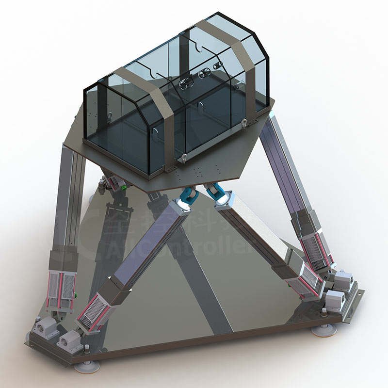 六自由度運動平臺、運動控制器、交換機、電源電纜、通訊電纜等安裝附件。本地接收到遠程IMU采集到的座椅姿態和加速度信息后,解算成座椅6個方向的運動信號來控制運動平臺,同時將相關信息輸出到顯示終端。