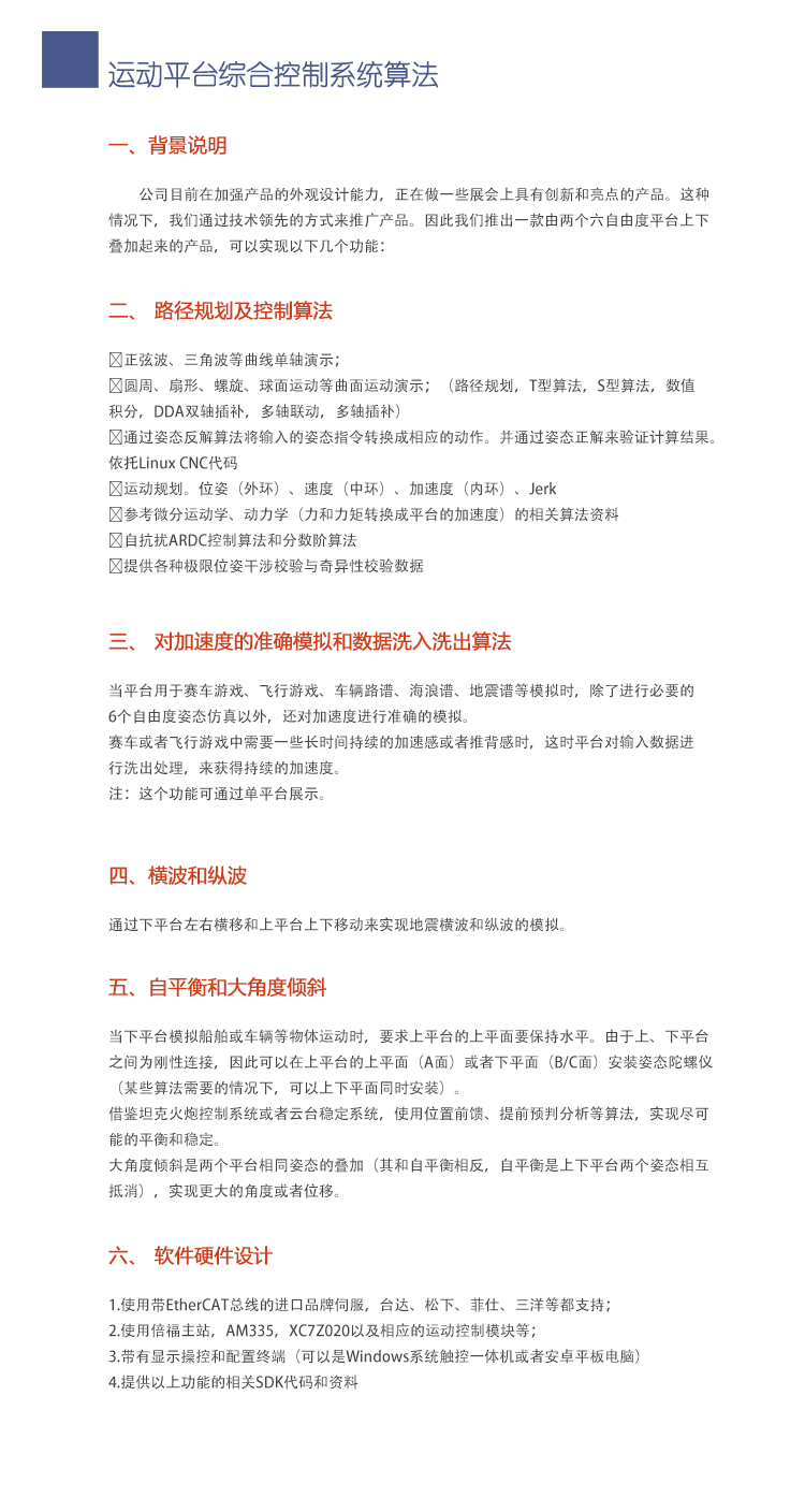 南京全控多自由度運動平臺綜合控制算法