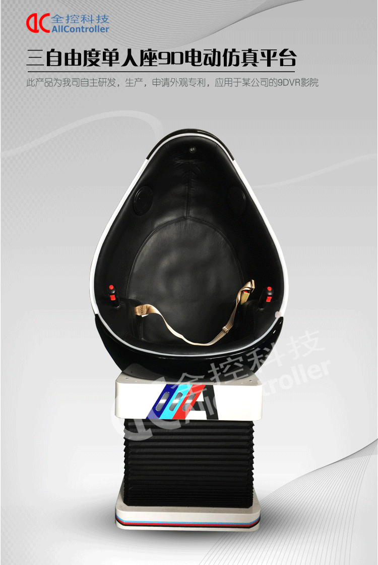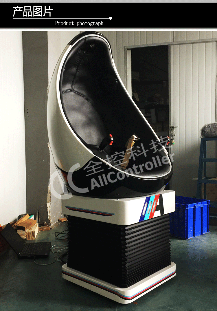 1.三自由度運動平臺 2.蛋殼座椅(動感互動倉) 3.電氣控制箱 4.控制軟件5.VR眼鏡(選配) 6.電腦 7.其他配件