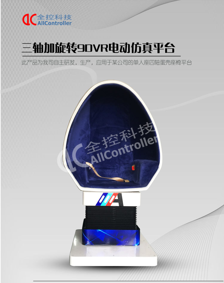 1.三自由度運(yùn)動(dòng)平臺(tái) 2.蛋殼座椅(動(dòng)感互動(dòng)倉) 3.電氣控制箱 4.控制軟件5.VR眼鏡(選配) 6.電腦 7.其他配件
