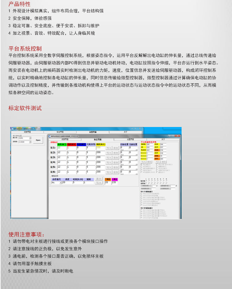答: 我公司主要從事仿真平臺(tái)、六自由度平臺(tái)和運(yùn)動(dòng)平臺(tái)控制卡的研發(fā)、生產(chǎn)與銷售,同時(shí)承接大型4D/5D/7D影院等工程。專注技術(shù)領(lǐng)先,提升用戶體驗(yàn)是我們的追求!