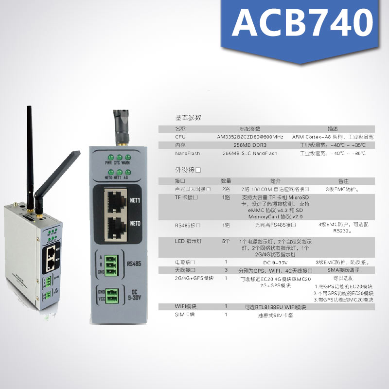 (1)ARM Cortex-A8架構600MHz,-40℃~+85℃工業級溫寬