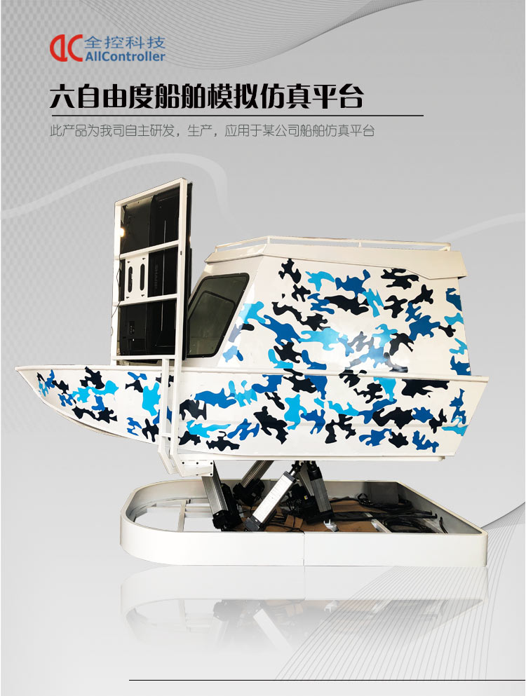 該款六自由度船舶模擬仿真平臺由南京全控自主研發,包括系列救生船模擬駕駛、快艇模擬駕駛、海上救援訓練等。 通過六自由度平臺的六軸運動控制系統,可以真實模擬船舶駕駛體驗,模擬船舶在海上行駛、波動橫波、縱波,加上模擬環境、VR視覺以及音響特效的配合,讓人身臨其境,廣泛應用于科普研究、模擬測試中使用。