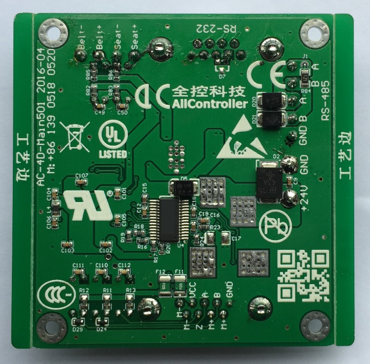 我公司在2016年4月正式推出了ACB501型單通道大功率有刷電機型平臺運動控制卡,它僅為1自由度電動平臺控制器,板子尺寸只有70*70mm,約為成年人的半個手掌大小。它主要用作在小型四軸/七軸旋轉(zhuǎn)平臺的旋轉(zhuǎn)軸上使用,也可用在駕駛模擬器上的方向盤/搖桿的力反饋控制。其最大的輸出電流可達20A,當用于36V的電機控制時,最大輸出功率720W。另外在控制的方式選擇上也相當靈活,可以選用高速下橋MOSET續(xù)流、高速下橋Diode續(xù)流、低速下橋續(xù)流和四象限控制等方式。使得電機處于顫振模式,減小了電機的起動時間,進而提高了被控對象的反應速度。l 其主要的特點:有刷電機、大功率、低成本、單軸、先進的控制算法、高動態(tài)相應等。