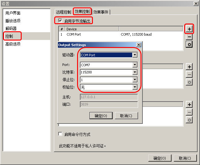 3. 配置文件的“串口2”是按鍵信號采集卡的串口號,當(dāng)采用UDP的方式作為控制指令輸入時,可以不理會當(dāng)前串口;