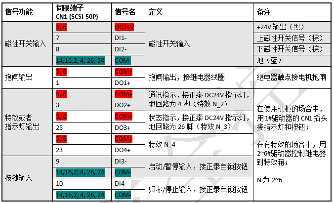 2. 關于負極回路部分:14腳(COM-)和16腳(GND)需要短接起來。如果使用抱閘時,應將2腳(DO1-)也一同短接起來。