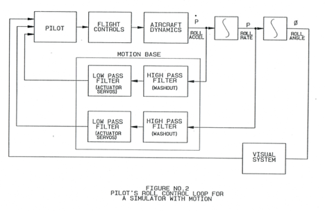 圖2顯示了帶有運動模擬器的飛行員的側傾控制環。滾動加速度和速度反饋信號仍然存在,盡管它們已被兩個濾波器修改。顯而易見,這些濾波器的設計至關重要。