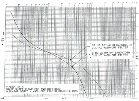 圖3顯示了運動基座沖洗濾波器和執行器伺服帶寬的兩種不同組合的相移。這兩種組合均旨在提供1.0Hz的零急移。目的是提供在1.0Hz附近平坦(0度)的相位曲線。目的是提供在1.0Hz附近平坦(0度)的相位曲線。增加執行機構的伺服帶寬并降低沖洗濾波器的頻率可以改善相位曲線的平坦度。執行器的伺服帶寬通常受運動基座和座艙結構的限制。沖洗頻率受執行器行程限制,因為將沖洗頻率降低2倍需要將行程增加4倍。