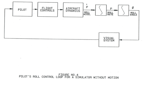 圖4顯示了沒有運動的模擬器飛行員的側傾控制環。請注意,完全沒有加速度反饋,并且必須通過將滾動位置與視覺顯示區分開來得出任何速率信息。從分析上可以看出,除非飛行員大幅度改變其補償(即他使用提示來控制飛機的方式),否則側傾控制回路將變得不穩定。此外,飛行員在運動時的陣風反應與運動時的陣風反應完全不同。